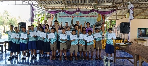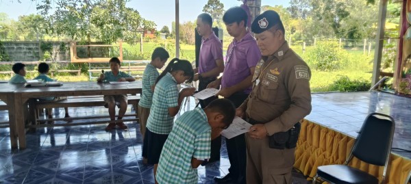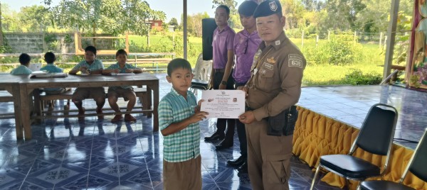 ร.ต.ท.ทวีศักดิ์ ขันแก้ว รอง สว.(จร)ฯ ด.ต.นิติกร การกวี ผบ.หมู่(ป.)สภ.เมืองร้อยเอ็ด ดำเนินการในพิธีมอบใบประกาศนียบัตร แก่นักเรียนที่สำเร็จหลักสูตร ตามโครงการ การศึกษาเพื่อต่อต้านการใช้ยาเสพติดในเด็กนักเรียน (D.A.R.E.ประเทศไทย) ้-เวลา 09.30น. ณ รร.บ้านเปลือย(สามัคคีราษฎร์ประสิทธิ์) ต.รอบเมืองฯ