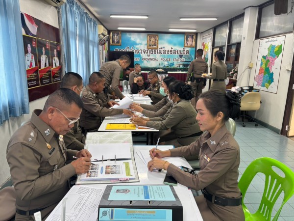 พ.ต.ท.หญิงสุนันทา วงมณี สว.อก.สภ.เมืองร้อยเอ็ด พร้อมเจ้าหน้าที่งานอำนวยการ/ธุรการ ได้เตรียมเอกสารที่เกี่ยวข้องของแต่ละสายงาน เพื่อรับการตรวจฯ ตามหัวข้อที่ ภ.จว.ร้อยเอ็ด กำหนดตามแบบตรวจ และเตรียมความพร้อมในการตรวจของจเรตำรวจ ในคราวต่อไป