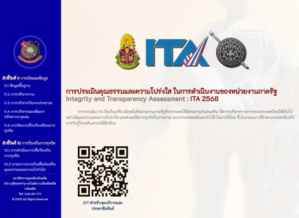 ข้อมูลการประเมินคุณธรรมและความโปร่งใสในการดำเนินงานของหน่วยงานของรัฐ (ITA) ประจำปีงบประมาณ 256...